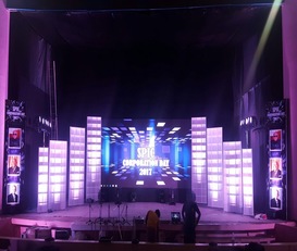 Our team are experts at creating solutions for stage set, scenic requirements & offering a full conference stage design. We offer everything from entirely stage construction, Branding, Signages, backdrop, backdrop design & installation.